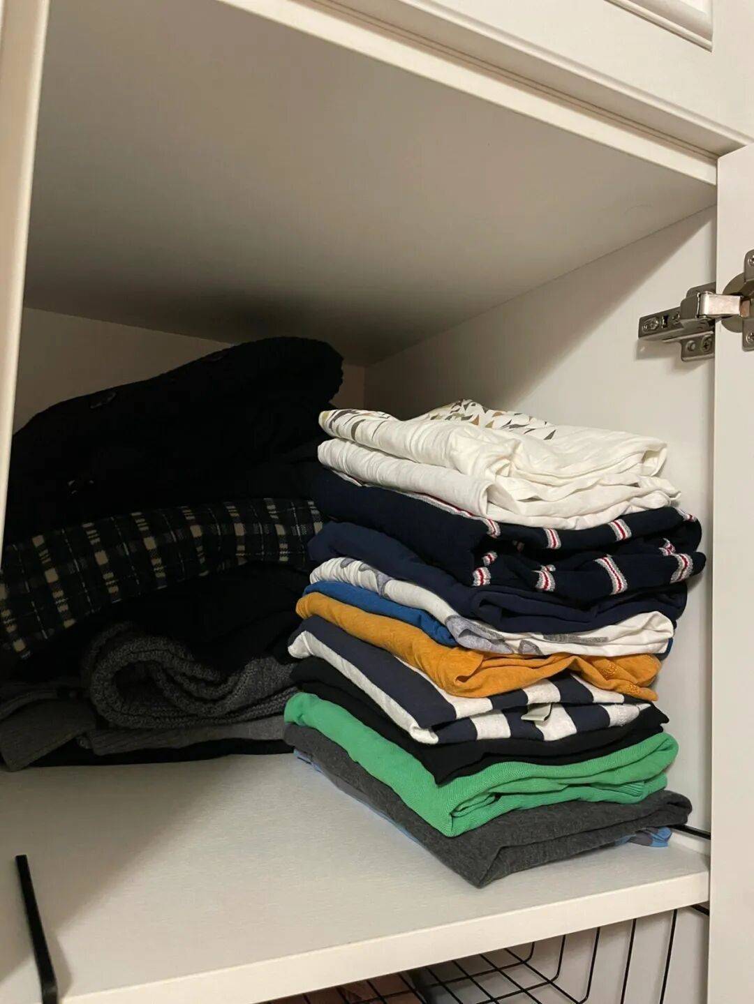 可若不把隔层空间叠满衣服,那么剩余的隔层空间就会被白白浪费掉,怎么看都不划算。
