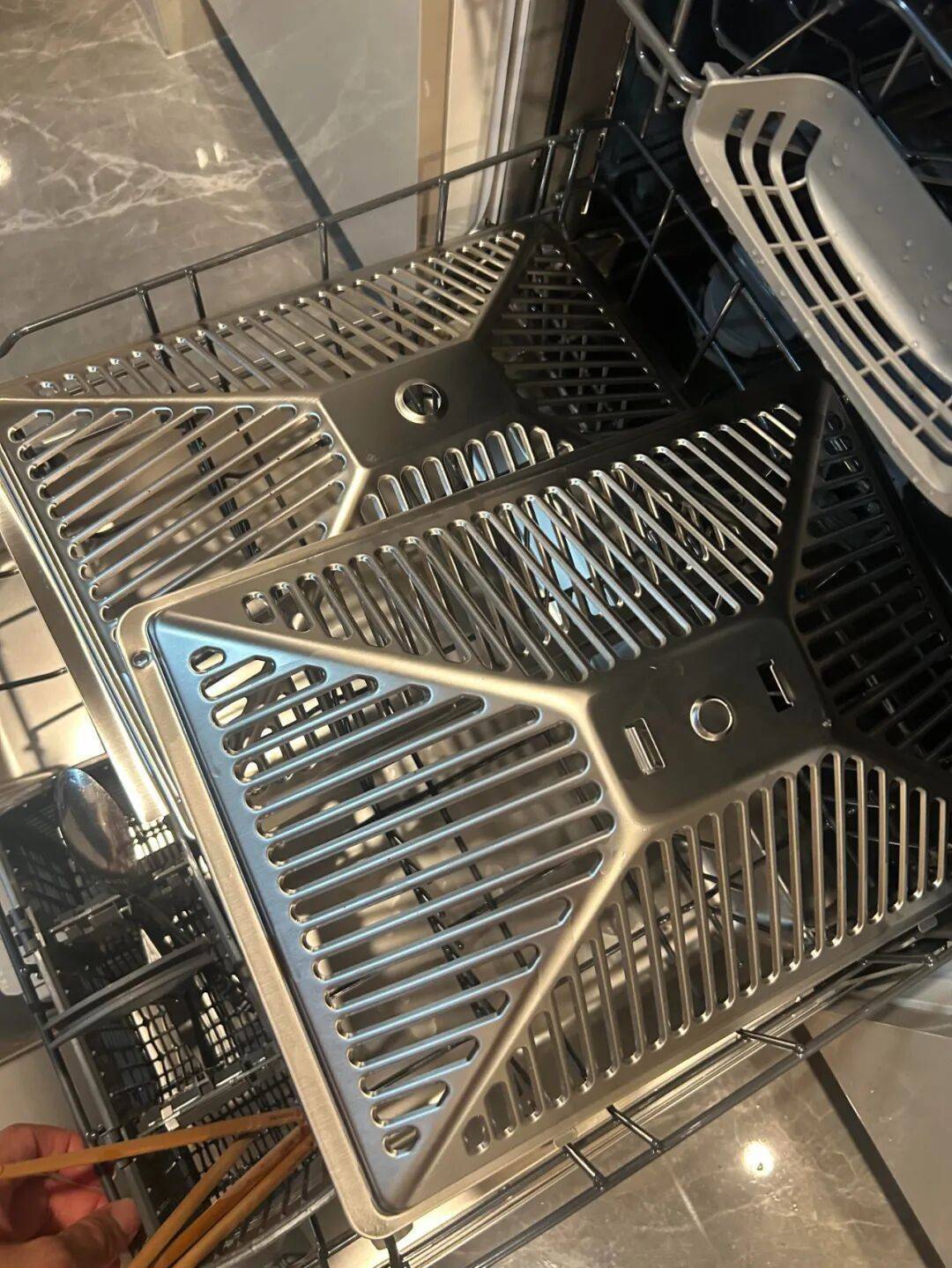 以前洗油烟机过滤网都是喷清洁剂来清洗,费力麻烦还洗不彻底。没想到用洗碗机清洗一下就解决了,洗出来的就和新的一样,洗碗机真是个好东西。
