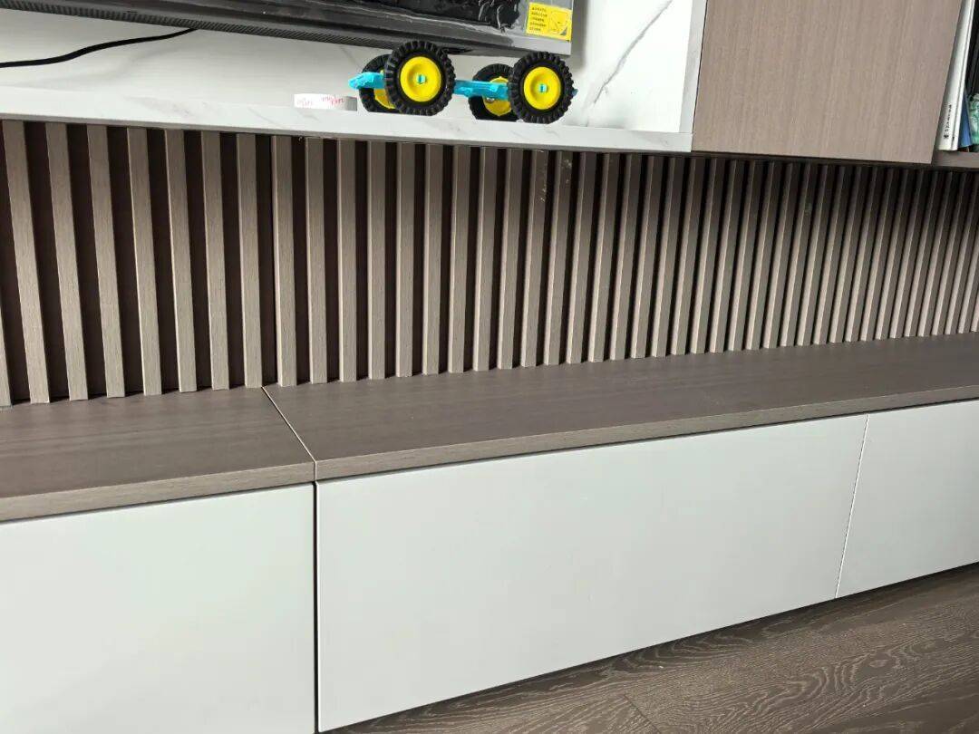 悬着的心终于死了,心心念念的悬浮背景墙做好了,但一看到背面缝隙里的灰,我就知道又要翻车了。