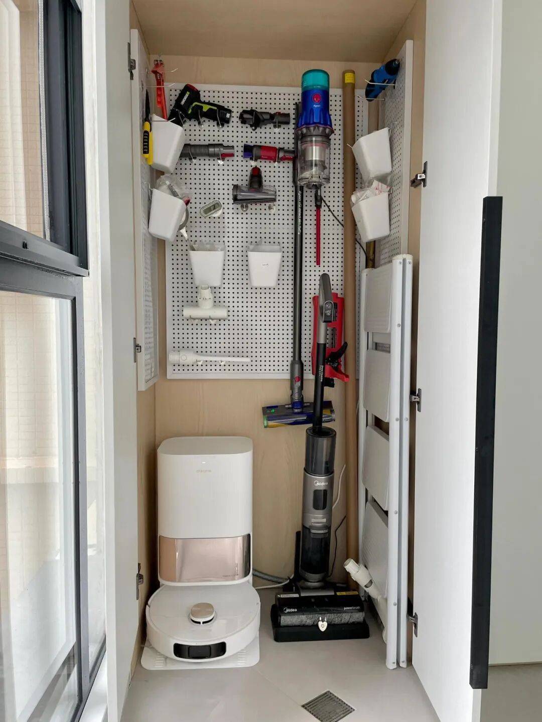 所以,一定要给家里做一组工具家政高柜,统一用来收纳这些工具。记得不要做底板,方便地面清洁。