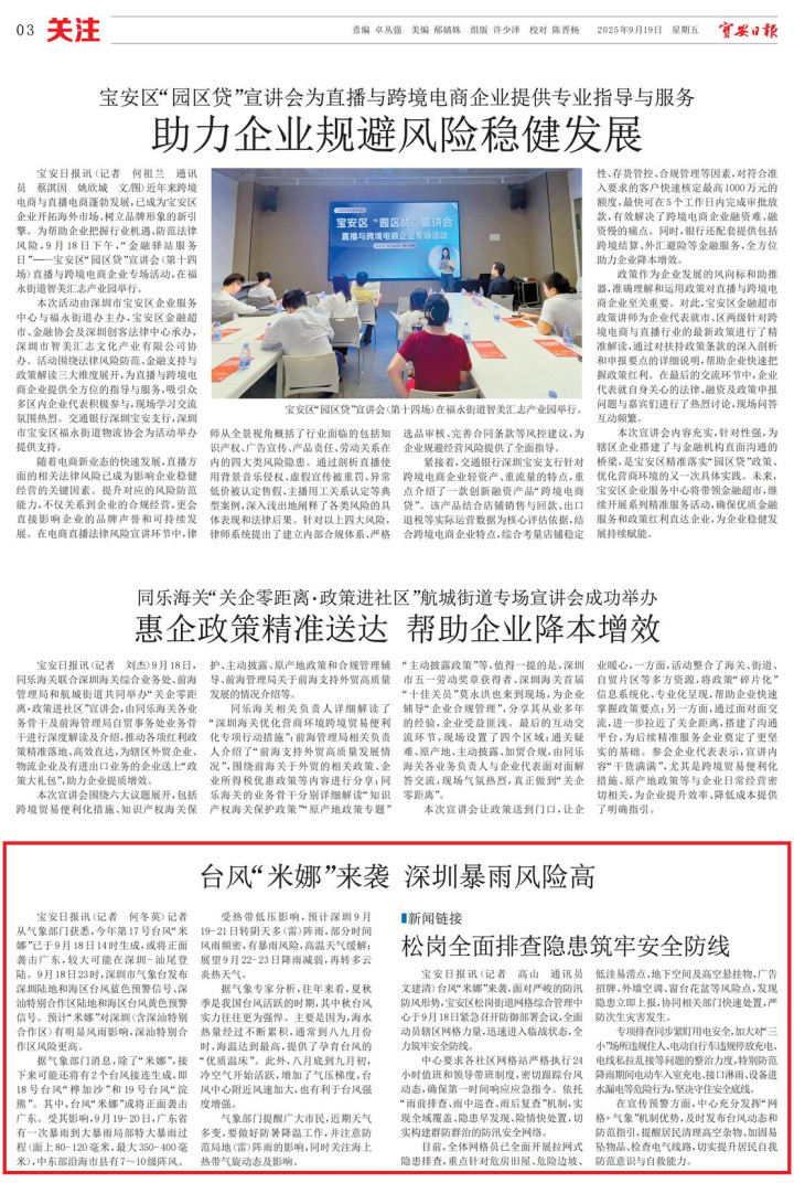 记者从气象部门获悉一鼎盈,今年第17号台风“米娜”已于9月18日14时生成,或将正面袭击广东,较大可能在深圳-汕尾登陆。9月18日23时,深圳市气象台发布深圳陆地和海区台风蓝色预警信号、深汕特别合作区陆地和海区台风黄色预警信号。预计“米娜”对深圳(含深汕特别合作区)有明显风雨影响,深汕特别合作区风险更高。